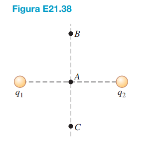 As duas cargas q1 e q2, representadas na Figura E21.38, possuem módulos iguais.