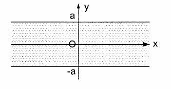 • Para -a \leq y \leq a: \vec{E} = \dfrac{\rho y}{\epsilon_0} \hat{j}