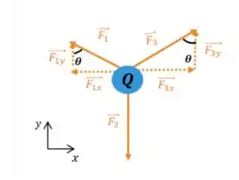 Ou seja, a força aponta para baixo e para a direita, formando um ângulo de cerca de 43,85^\circ abaixo do eixo +x.